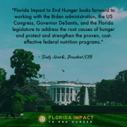 Florida Impact to End Hunger looks forward to working with the Biden administration, the US Congress, Governor DeSantis, and the Florida legislature to address the root causes of hunger and protect and strengthen the proven, cost-effective federal nutrition programs.