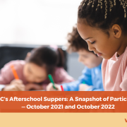 FRAC’s report, “Afterschool Suppers: A Snapshot of Participation,” analyzes the noticeable changes in afterschool meal participation, particularly comparing October 2021 and October 2022. The report found that over 1.15 million children received afterschool suppers through the Afterschool Nutrition Programs on an average school day in October 2022, reaching approximately 339,360 fewer children compared to October 2021.
